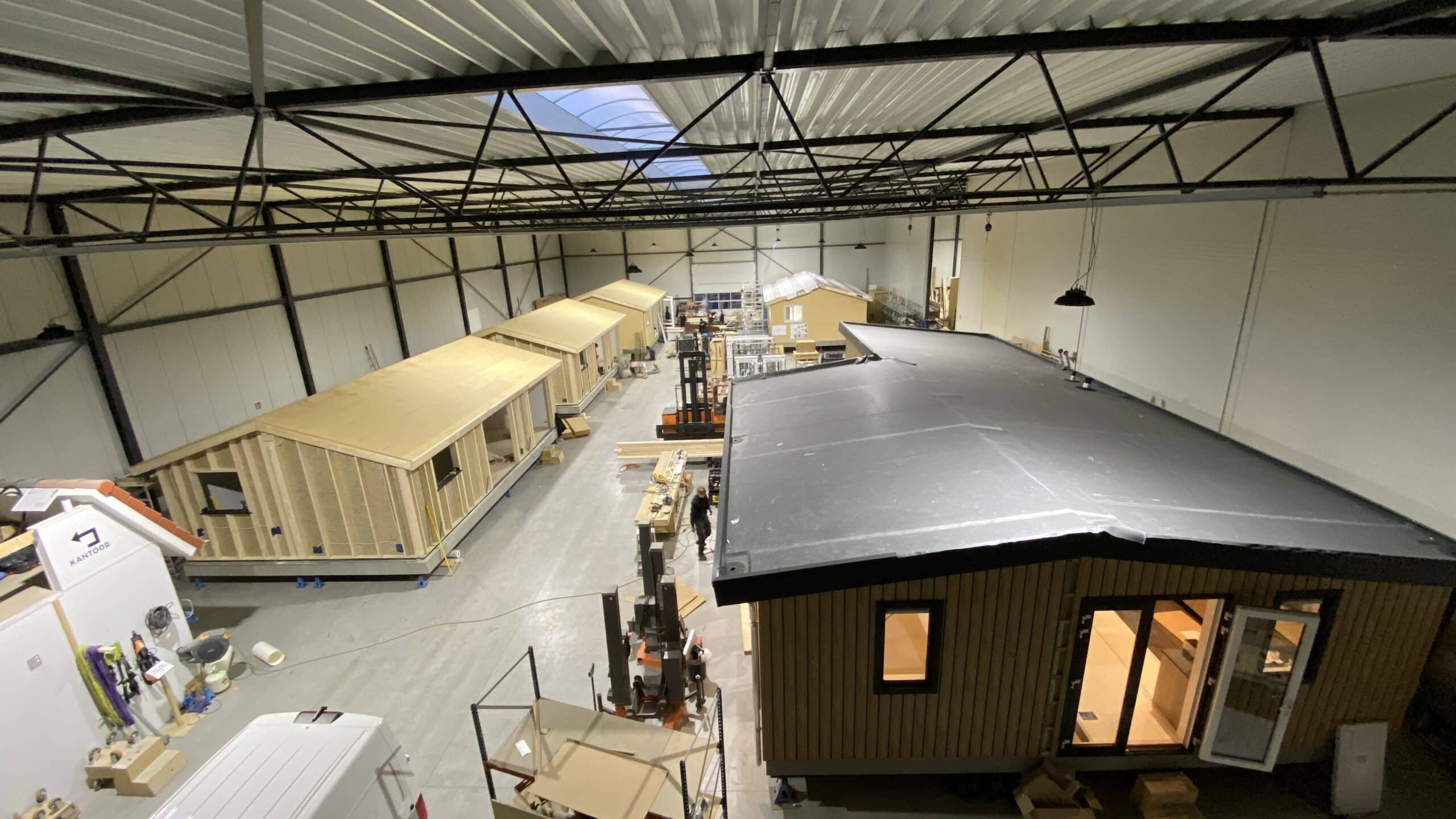 Tijdelijke woning 85m2 in L-vorm in Vorden. Een mantelzorgwoning kan ook bewoont worden door de zorggever. Onze opdrachtgevers – een jong stel – zijn zorggevers en hebben deze woning door ons laten realiseren om zelf in te kunnen wonen. Ze wilden graag een vaste overkapping om lekker onder te kunnen zitten en genieten, dat is gelukt! Met de mooie eiken gebinten in het zicht wordt het uitzicht nóg mooier.