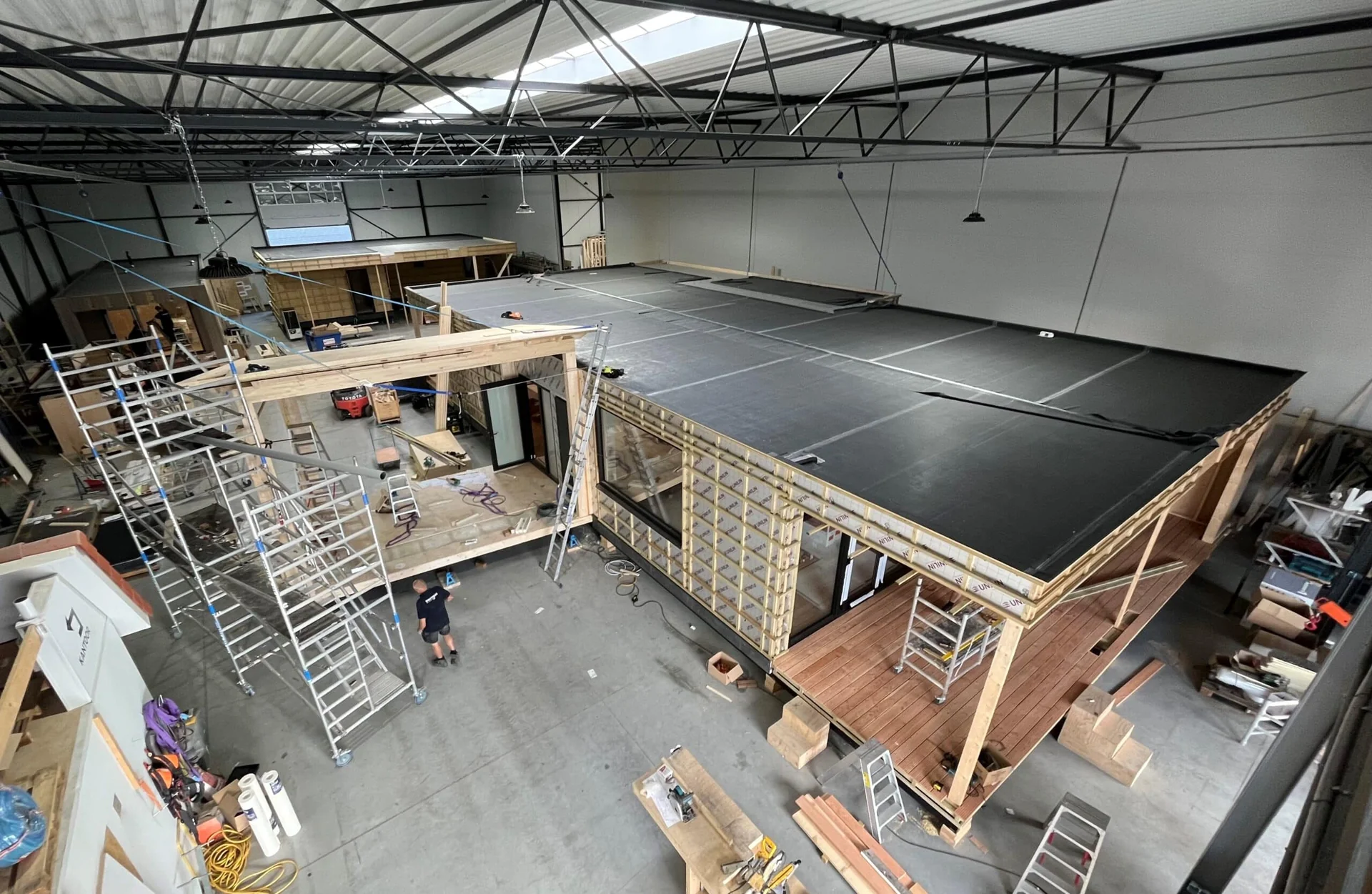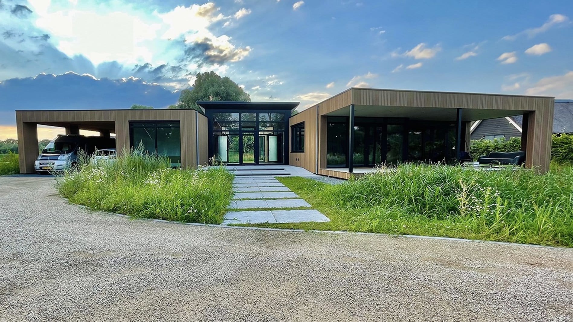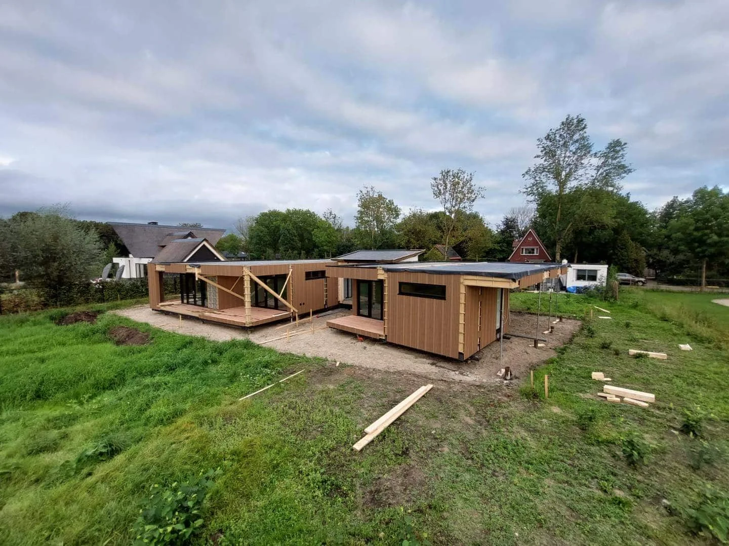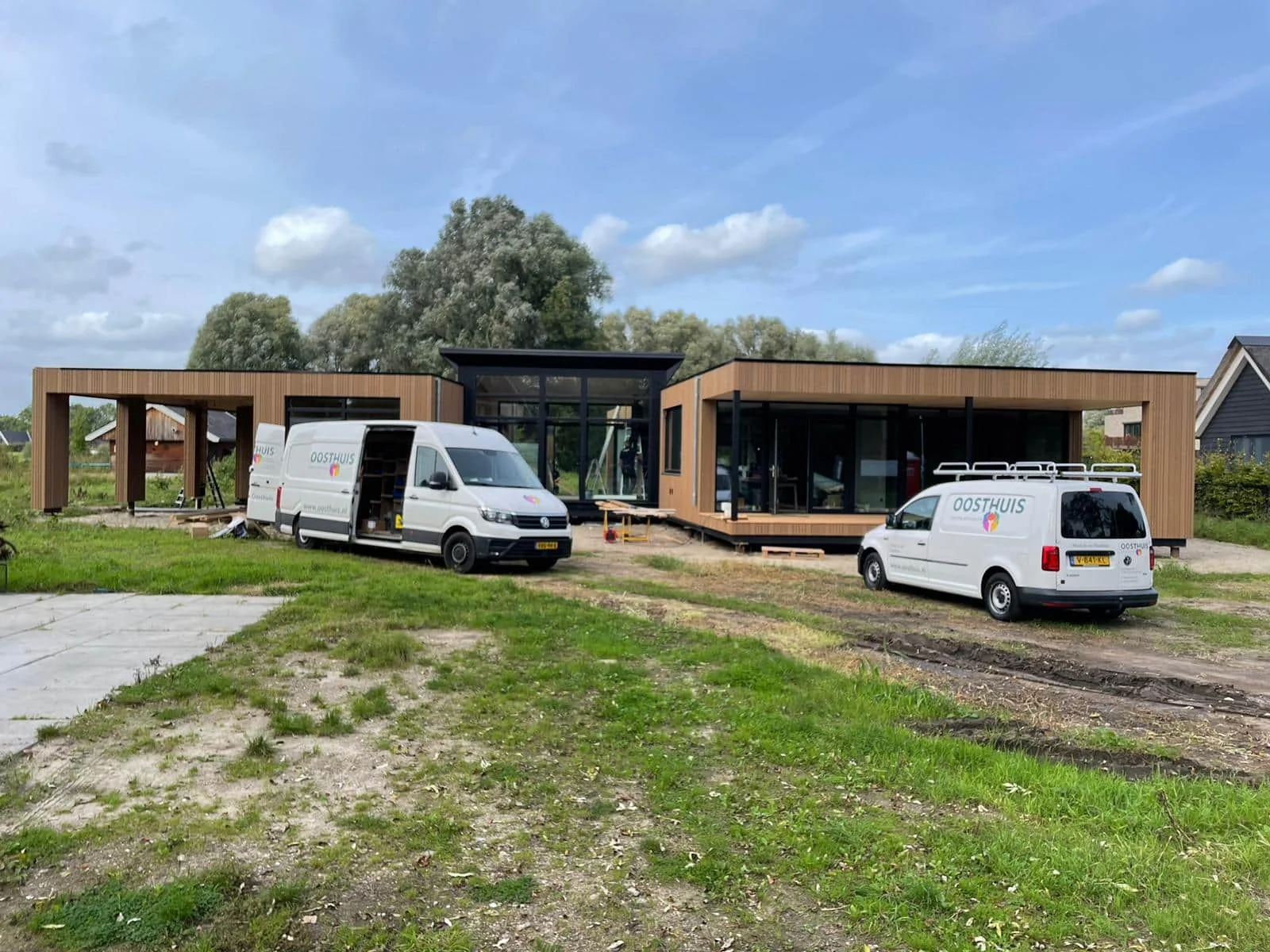 Permanente woning 250m2 in Bredevoort met praktijk. Deze riante woning wordt voorzien van 2 badkamers, sauna, grote woonkamer met leefkeuken en kookeiland, techniekruimte, inloopkast en 2 grote slaapkamers. De woning wordt volledig elektrisch uitgevoerd met de nieuwste technieken op het gebied van duurzaamheid. Om een klein voorbeeld te geven; het regenwater wordt opgevangen en vervolgens kunnen de toiletten daarmee worden doorgespoeld. De woning is ontworpen door Rinke ter Haar architecten en wordt volledig door Oosthuis geprefabriceerd in de hal. Half september zal het prefab huis in delen naar het perceel worden getransporteerd.