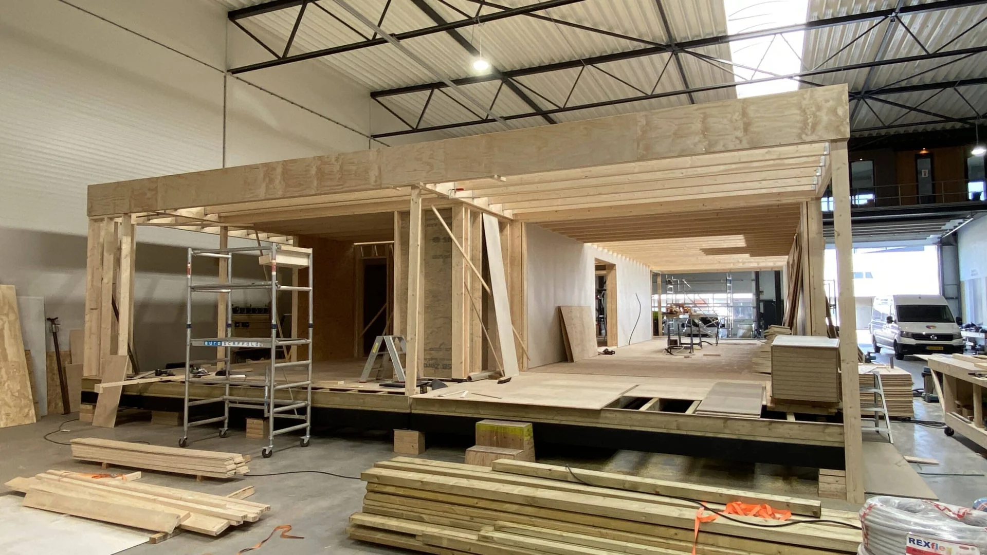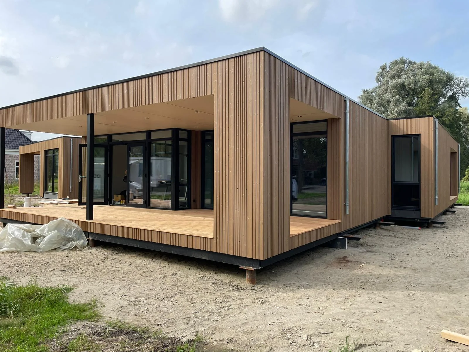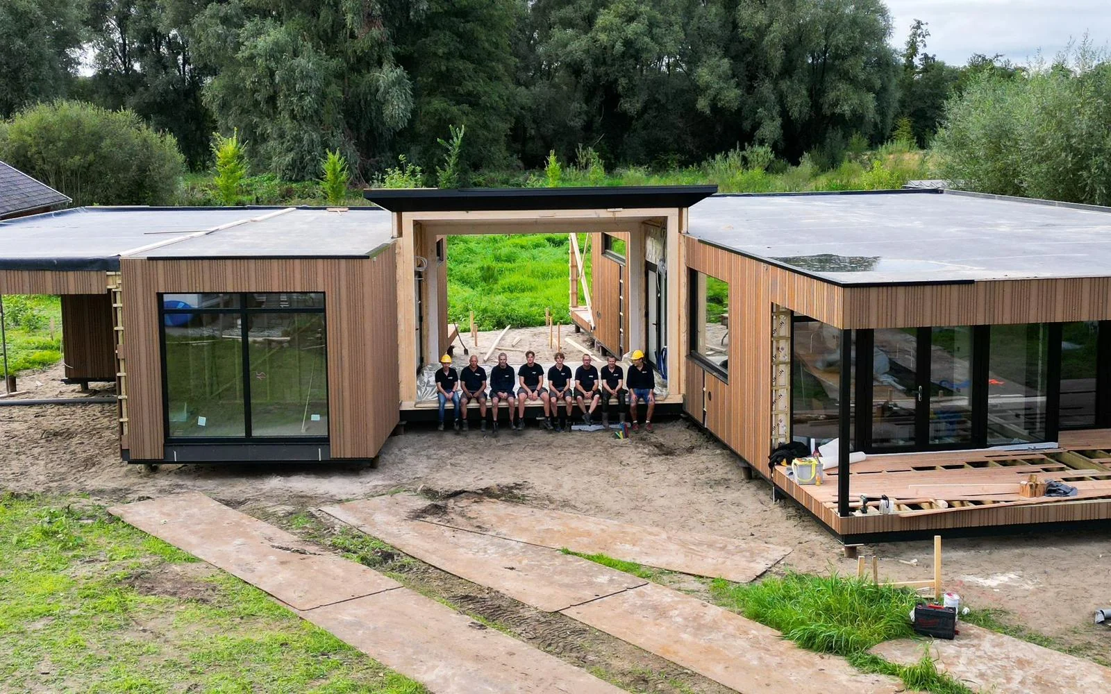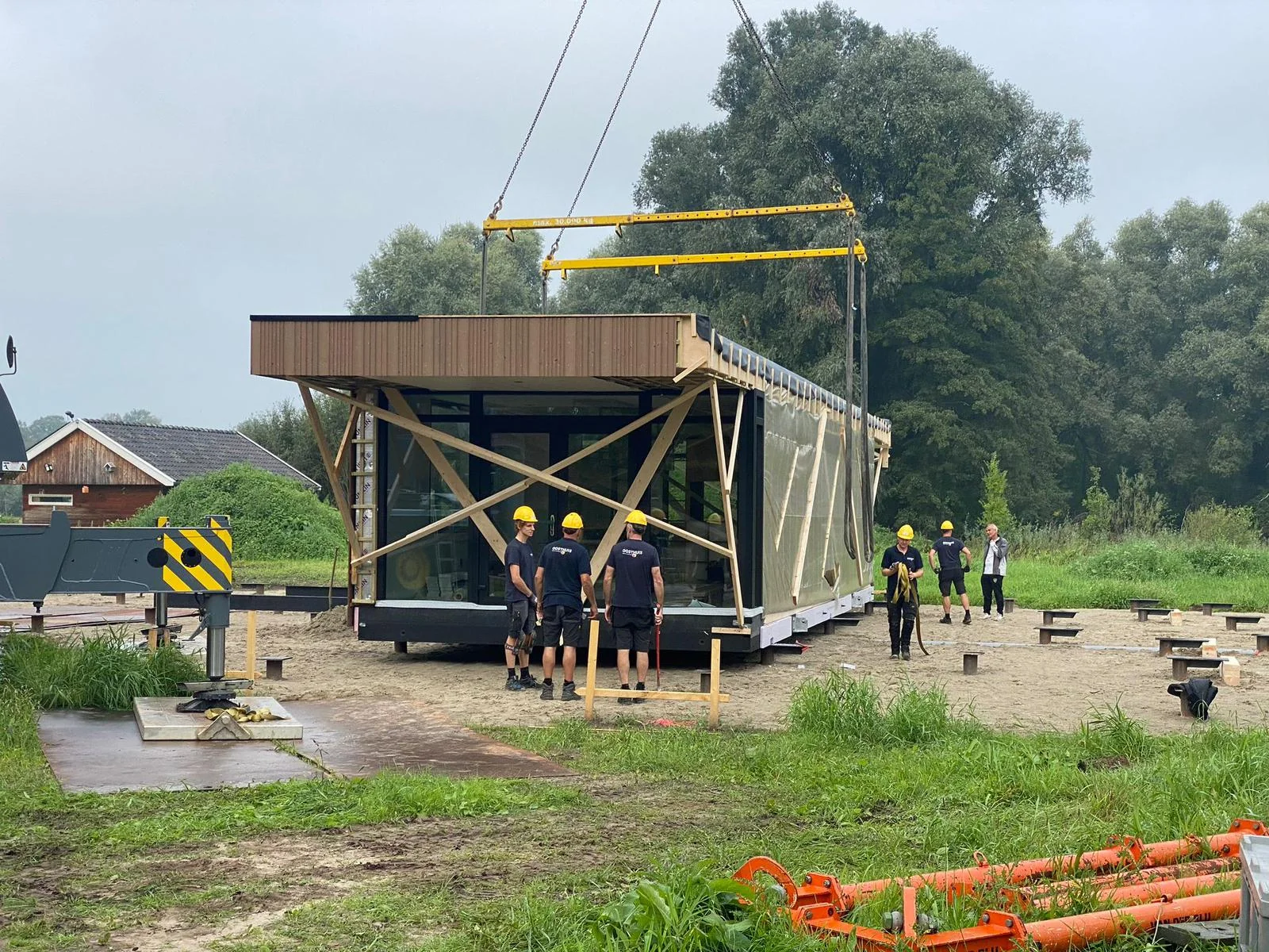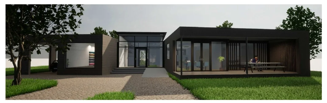 Permanente woning 250m2 in Bredevoort met praktijk. Deze riante woning wordt voorzien van 2 badkamers, sauna, grote woonkamer met leefkeuken en kookeiland, techniekruimte, inloopkast en 2 grote slaapkamers. De woning wordt volledig elektrisch uitgevoerd met de nieuwste technieken op het gebied van duurzaamheid. Om een klein voorbeeld te geven; het regenwater wordt opgevangen en vervolgens kunnen de toiletten daarmee worden doorgespoeld. De woning is ontworpen door Rinke ter Haar architecten en wordt volledig door Oosthuis geprefabriceerd in de hal. Half september zal het prefab huis in delen naar het perceel worden getransporteerd.