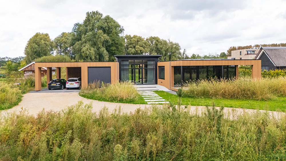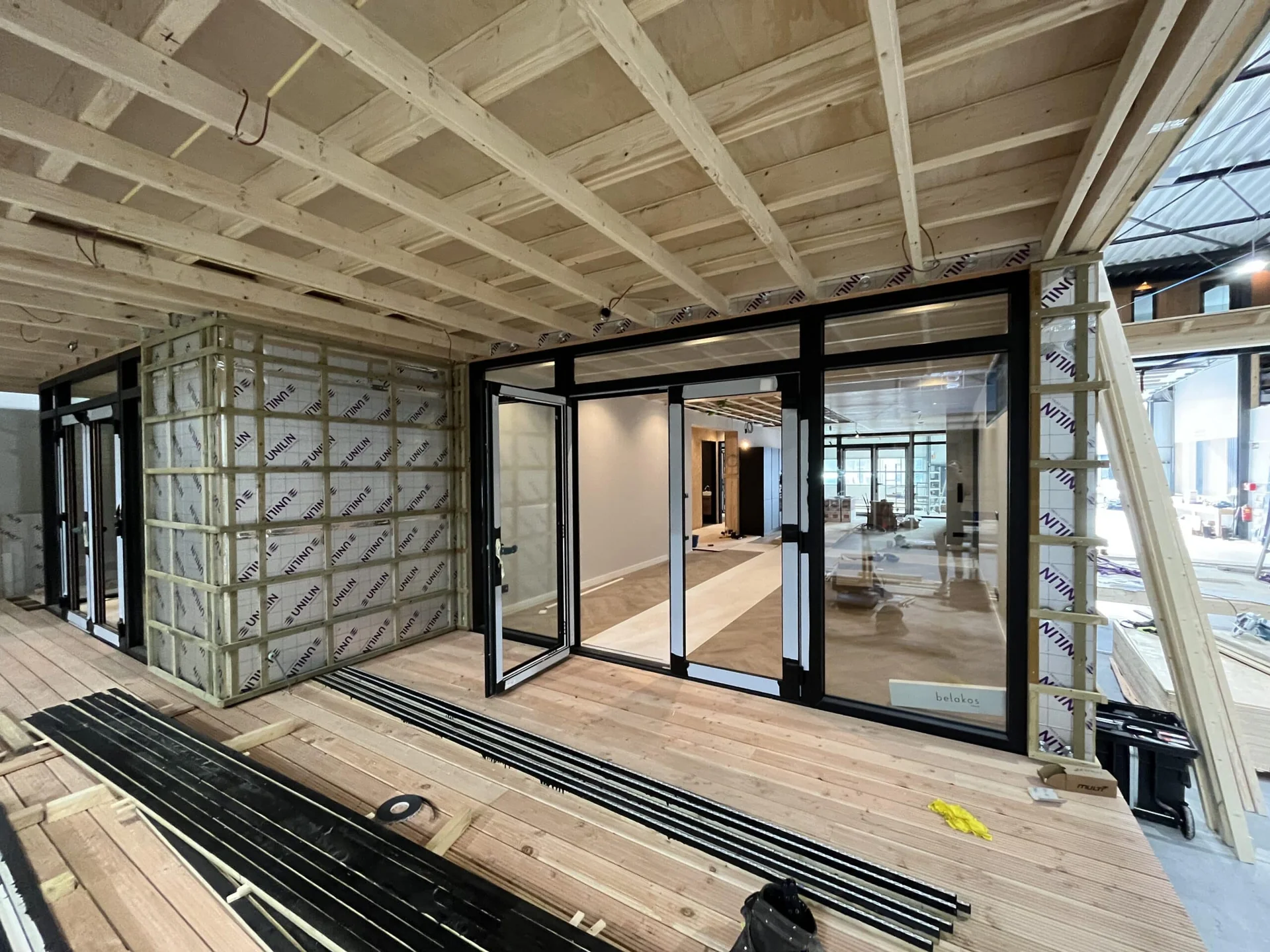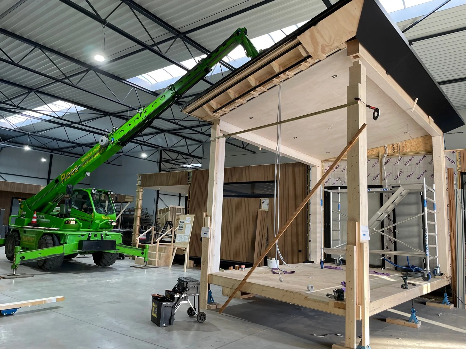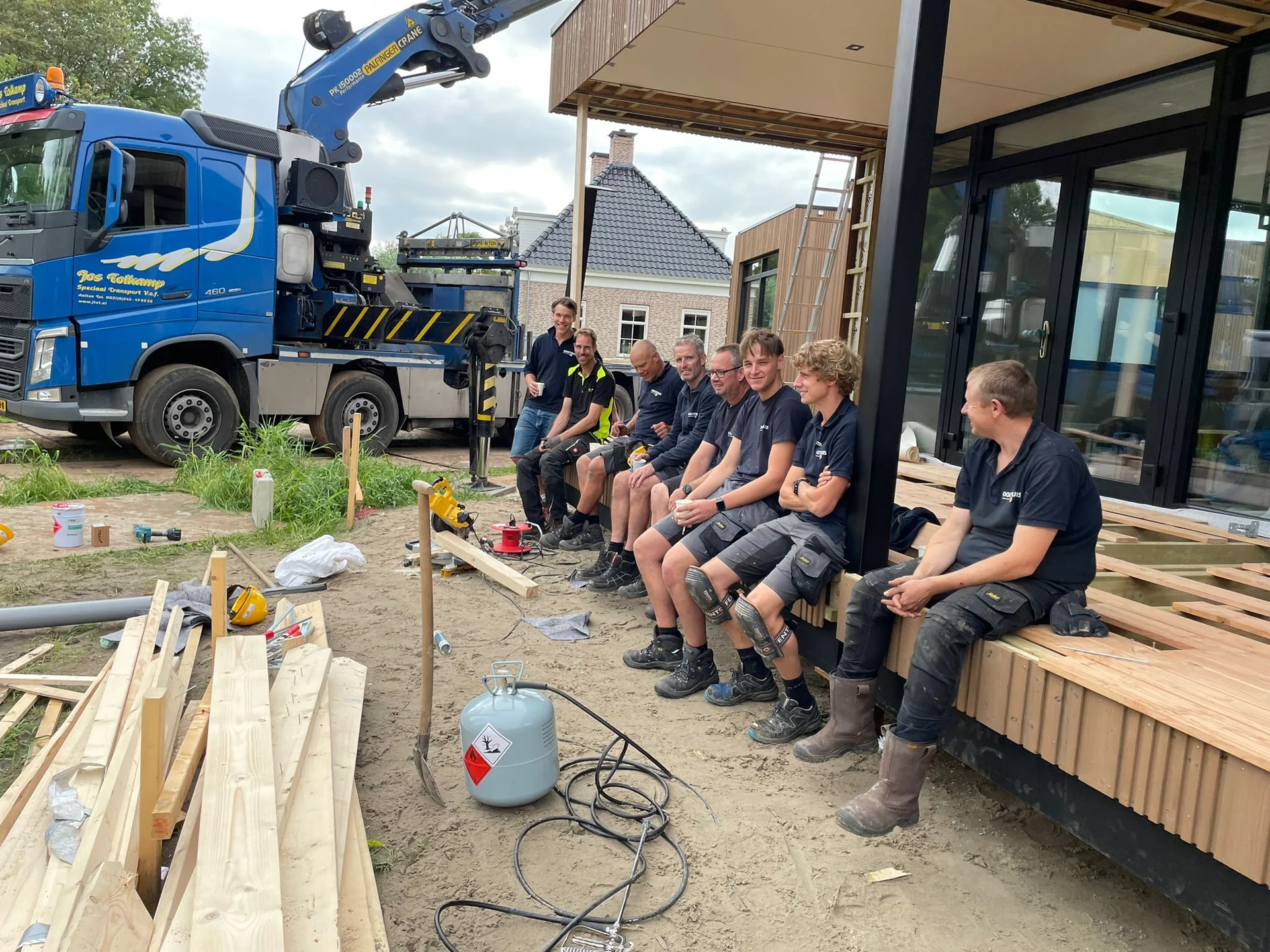 Permanente woning 250m2 in Bredevoort met praktijk. Deze riante woning wordt voorzien van 2 badkamers, sauna, grote woonkamer met leefkeuken en kookeiland, techniekruimte, inloopkast en 2 grote slaapkamers. De woning wordt volledig elektrisch uitgevoerd met de nieuwste technieken op het gebied van duurzaamheid. Om een klein voorbeeld te geven; het regenwater wordt opgevangen en vervolgens kunnen de toiletten daarmee worden doorgespoeld. De woning is ontworpen door Rinke ter Haar architecten en wordt volledig door Oosthuis geprefabriceerd in de hal. Half september zal het prefab huis in delen naar het perceel worden getransporteerd.