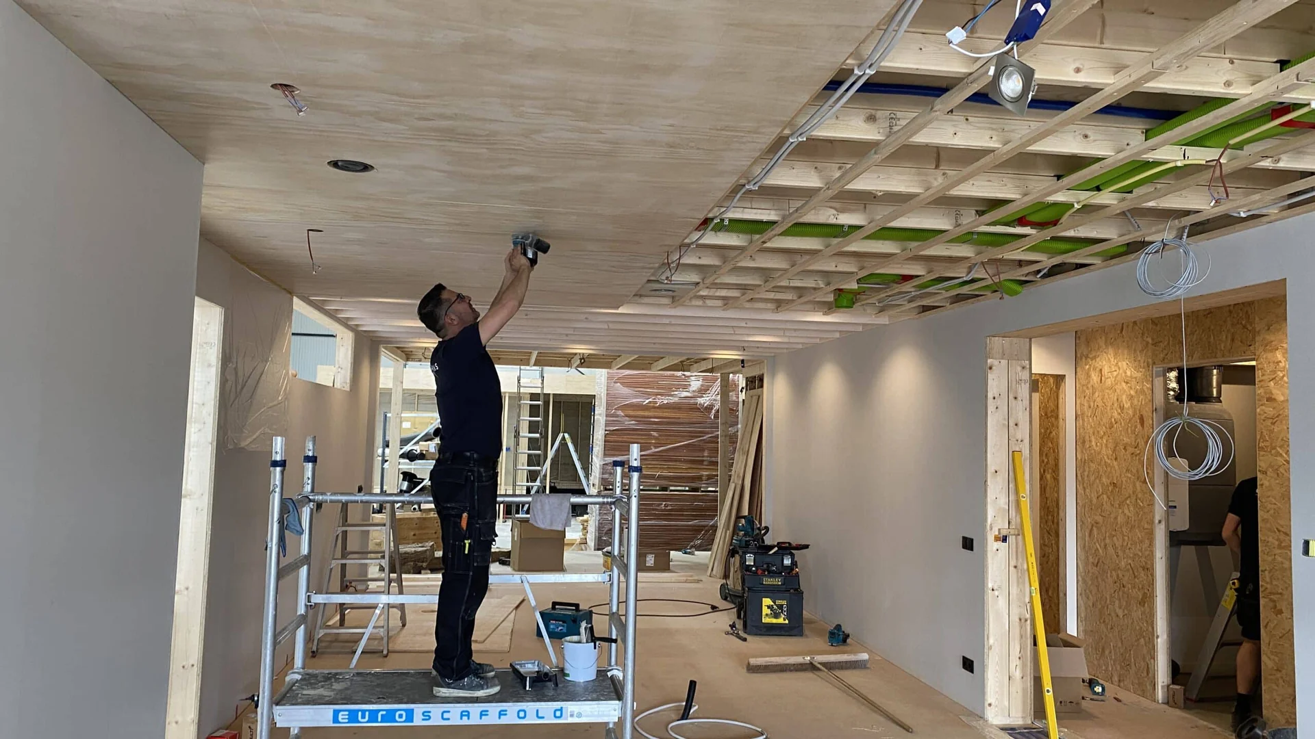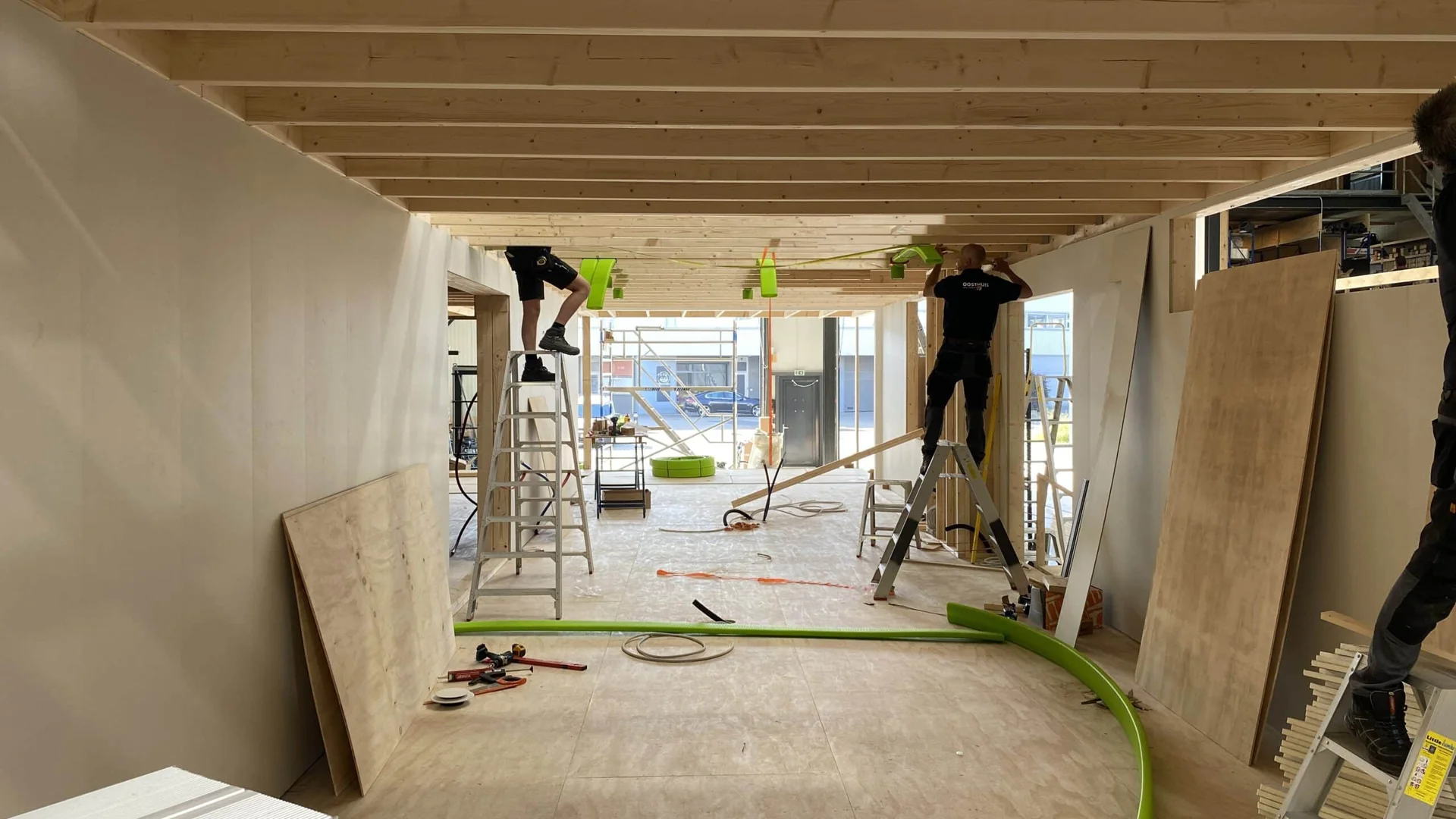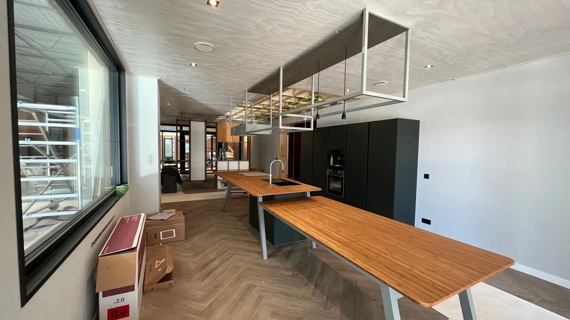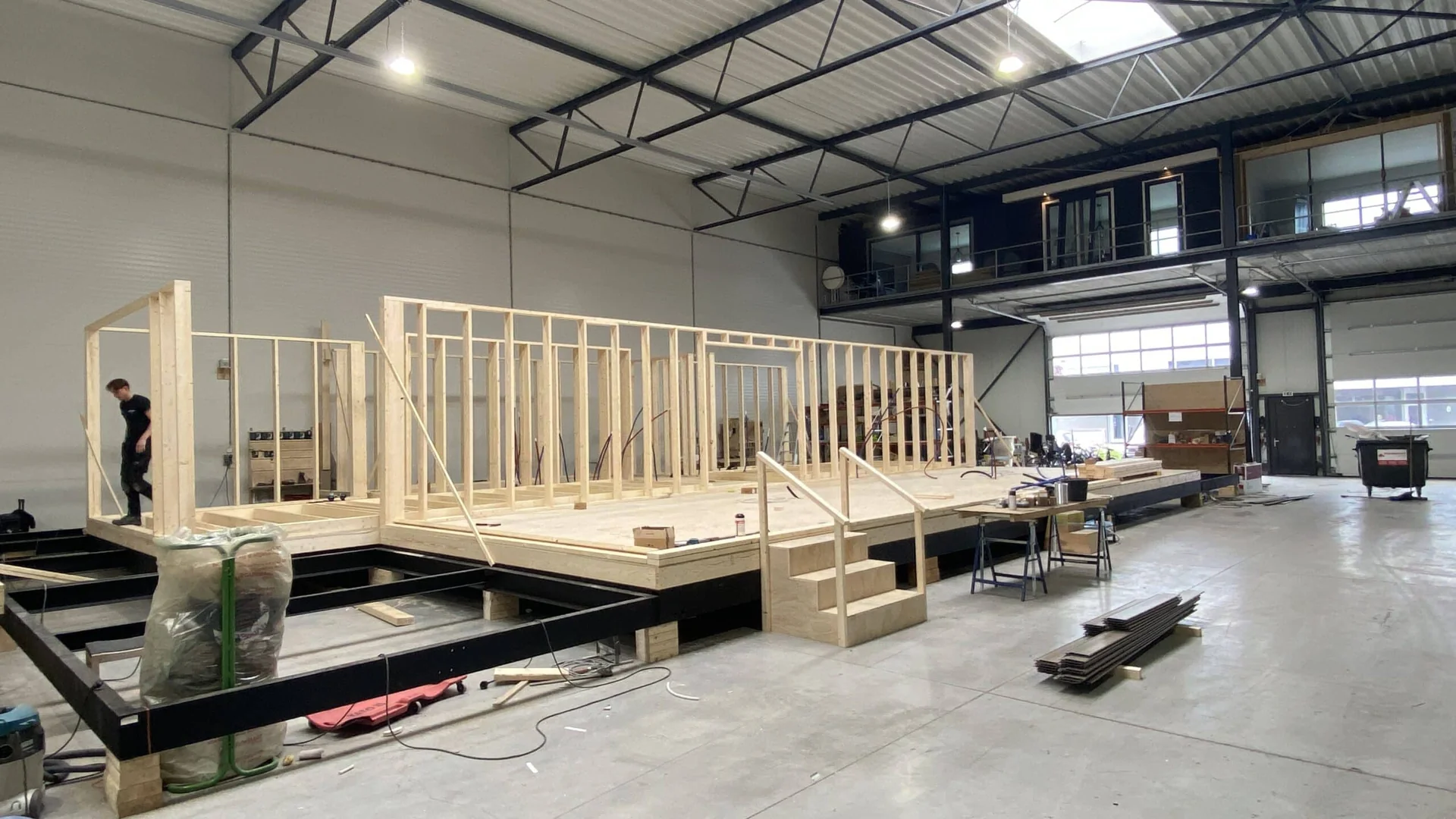 Permanente woning 250m2 in Bredevoort met praktijk. Deze riante woning wordt voorzien van 2 badkamers, sauna, grote woonkamer met leefkeuken en kookeiland, techniekruimte, inloopkast en 2 grote slaapkamers. De woning wordt volledig elektrisch uitgevoerd met de nieuwste technieken op het gebied van duurzaamheid. Om een klein voorbeeld te geven; het regenwater wordt opgevangen en vervolgens kunnen de toiletten daarmee worden doorgespoeld. De woning is ontworpen door Rinke ter Haar architecten en wordt volledig door Oosthuis geprefabriceerd in de hal. Half september zal het prefab huis in delen naar het perceel worden getransporteerd.