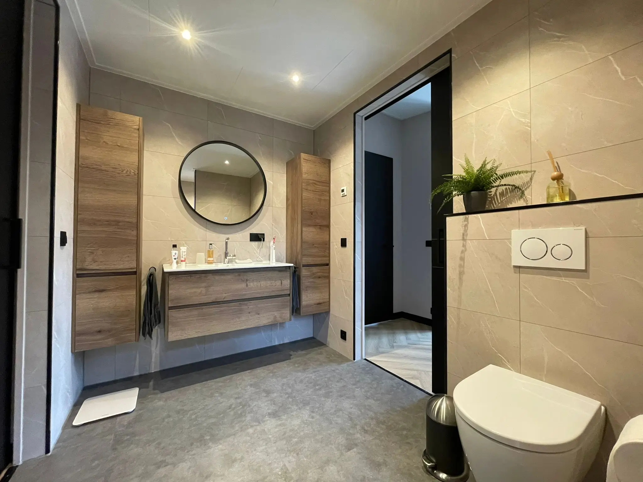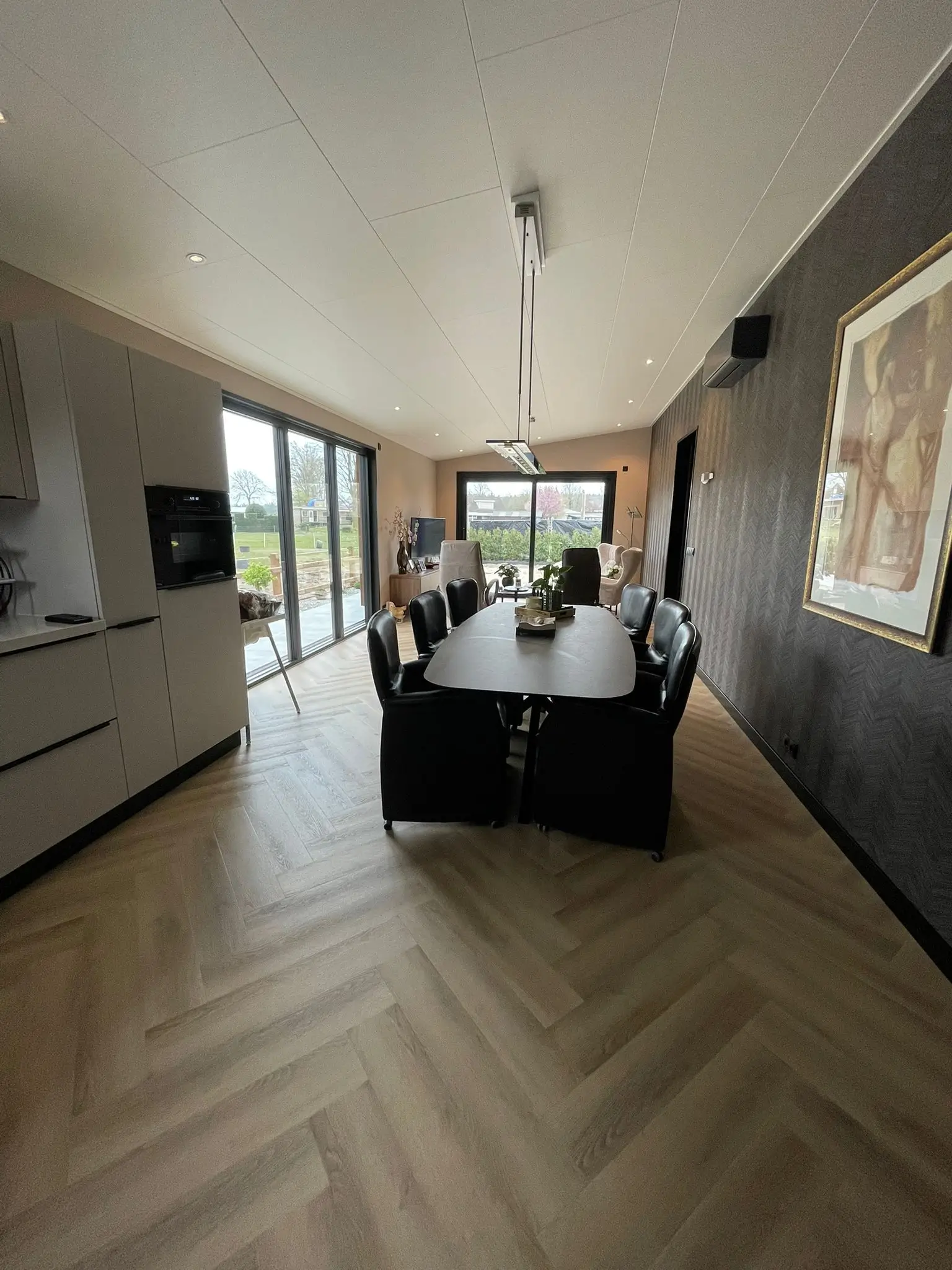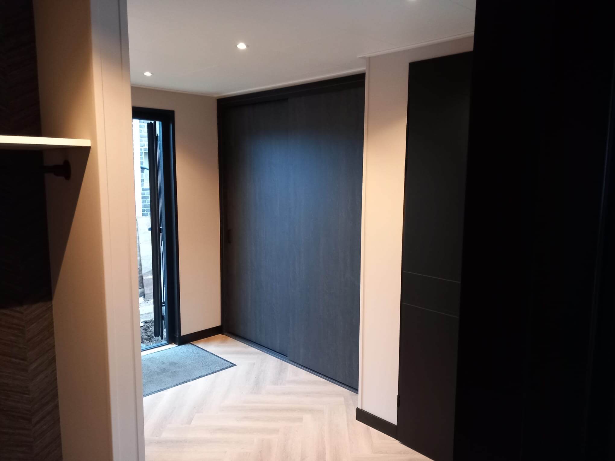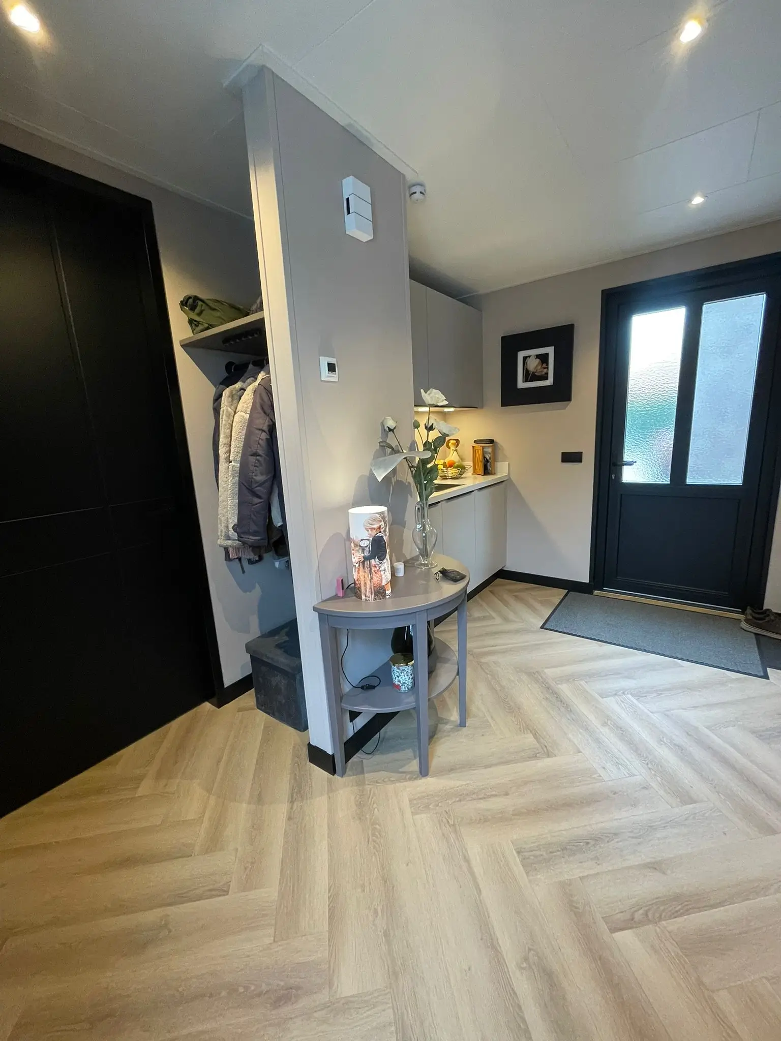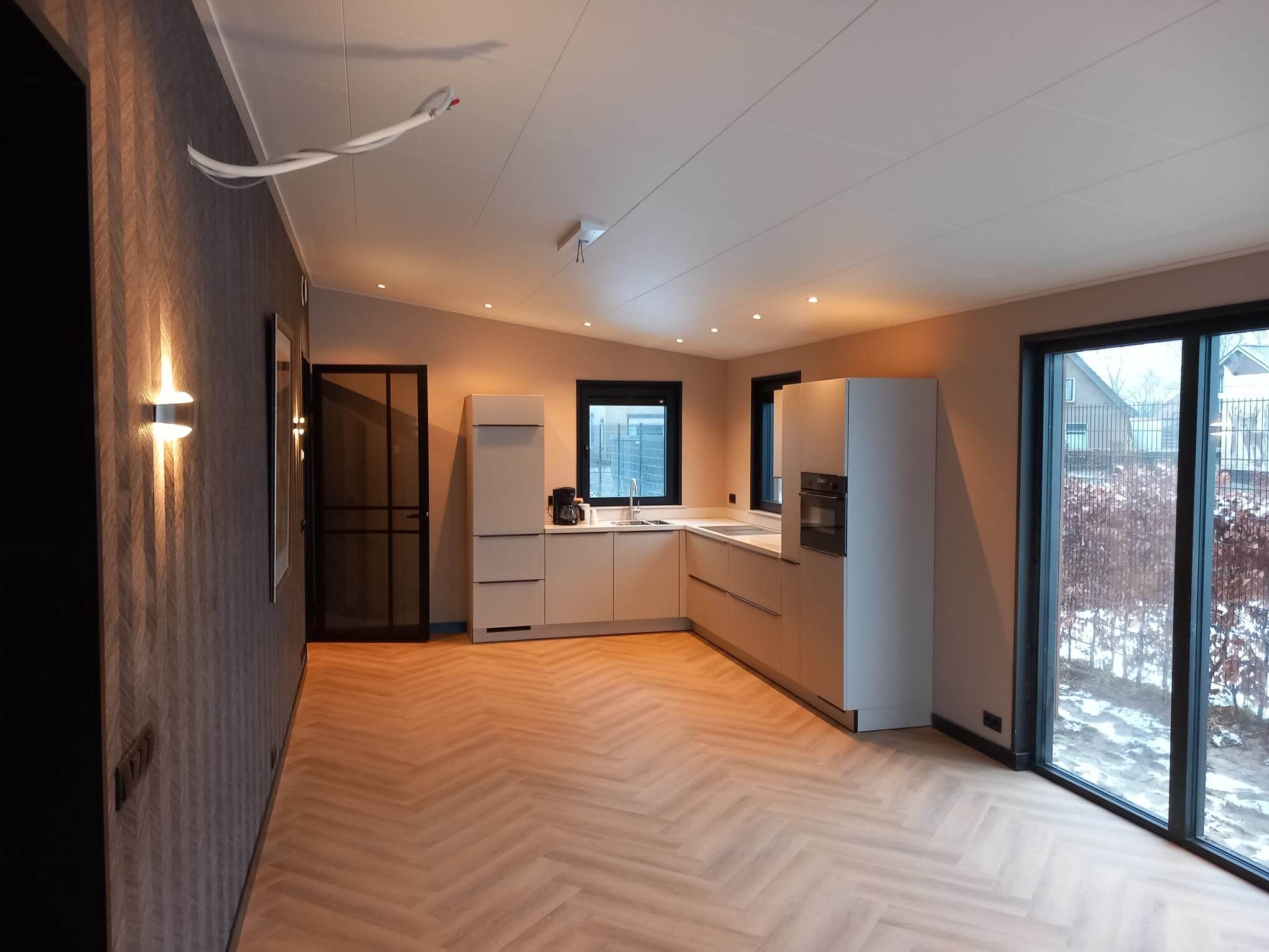 Pré-mantelzorgwoning 100 m² in Beek. Deze prefab pré-mantelzorgwoning van 100 m² komt in Beek te staan. Zichtbaar aan de buitenkant zijn de houten gevelbekleding, de onderhoudsvriendelijke kunststof kozijnen en donkere steenstrips aan de onderzijde van het huis. In de prefab woning bevindt zich een bijkeuken, apart toilet, 2 grote slaapkamers met daartussen de badkamer. De woonkamer met open keuken zijn praktisch en ruim opgezet, vanuit de woonkamer kunnen de klanten door de schuifpui direct het toekomstige terras betreden.