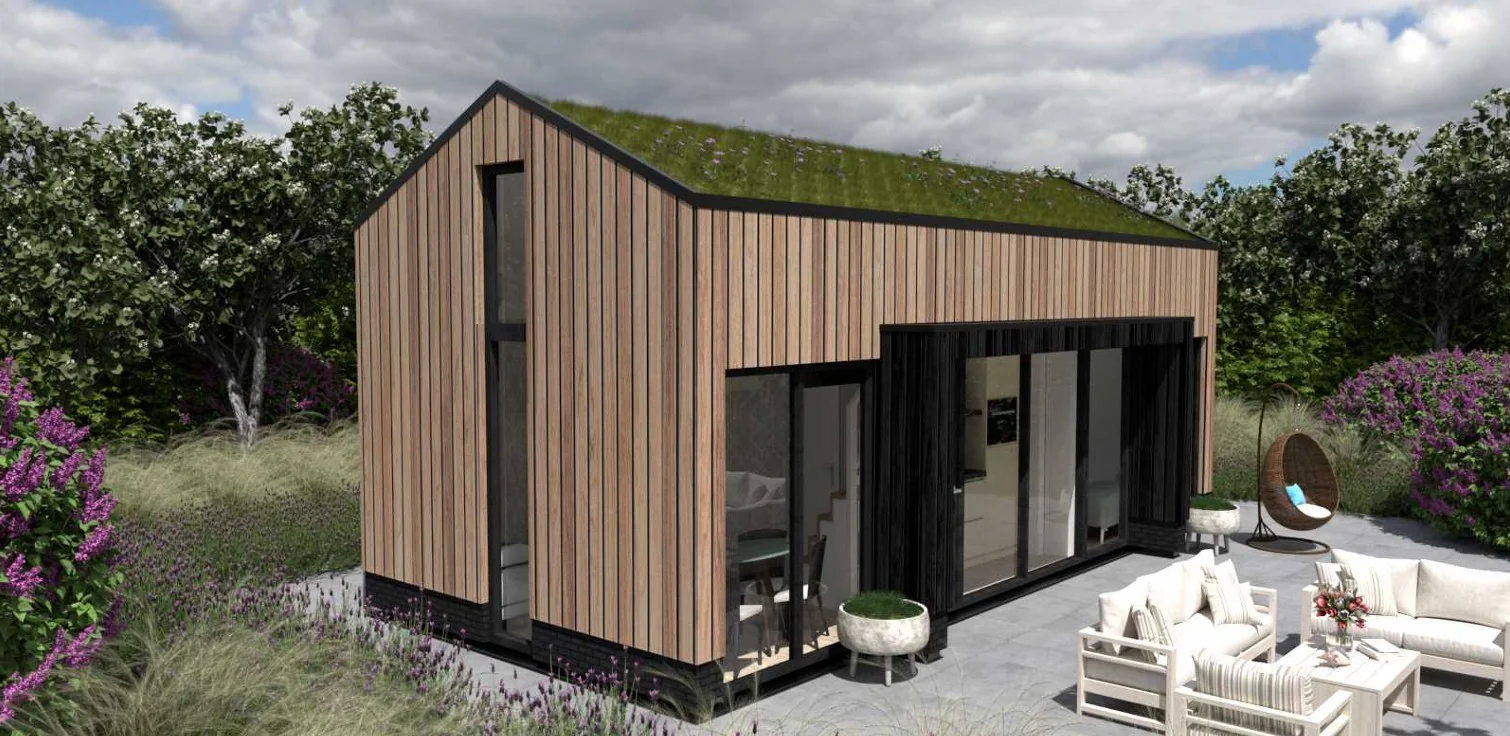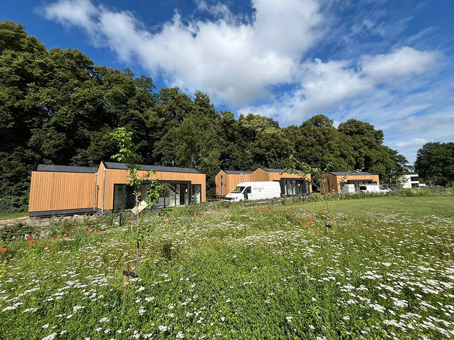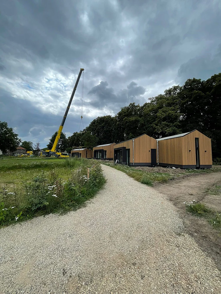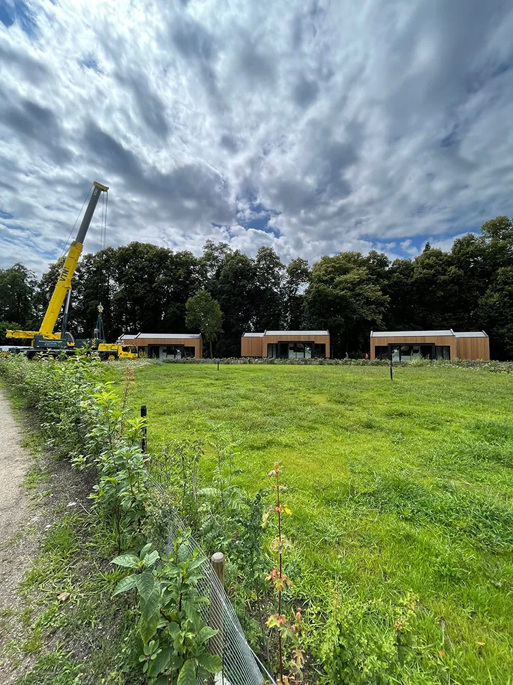 Zes tiny hotels 36 m2 in Doetinchem. Deze bijzondere opdracht bestaat uit de bouw van 6 tiny hotels die in Doetinchem komen te staan. Met 36 m2 klinkt de ruimte niet heel groot, maar door een praktische inrichting en het maximale gebruik van de hoogte is alles aanwezig. De vakantiewoningen van 9×4 meter bevatten: Grote slaapkamer, Slaapzolder, Open keuken, Badkamer met toilet, Inbouwkasten, Technische ruimte. Vanuit het woongedeelte wordt er een panoramisch uitzicht over het park gecreëerd. Ze worden gebouwd met natuurvriendelijke materialen zoals: Houtvezel isolatie, Sedumdak (groen dak). Bij de Buitenplaats Park Ruimzicht geloven we in de kracht van verbinding en gemeenschap. We creëren een plek waar mensen samenkomen om te leren, te groeien en te genieten. Op het land werken we op een regeneratieve manier, waarbij we de natuur herstellen in plaats van uitputten. Samen creëren we een omgeving waar iedereen iets kan bijdragen. Samen voorzienend.