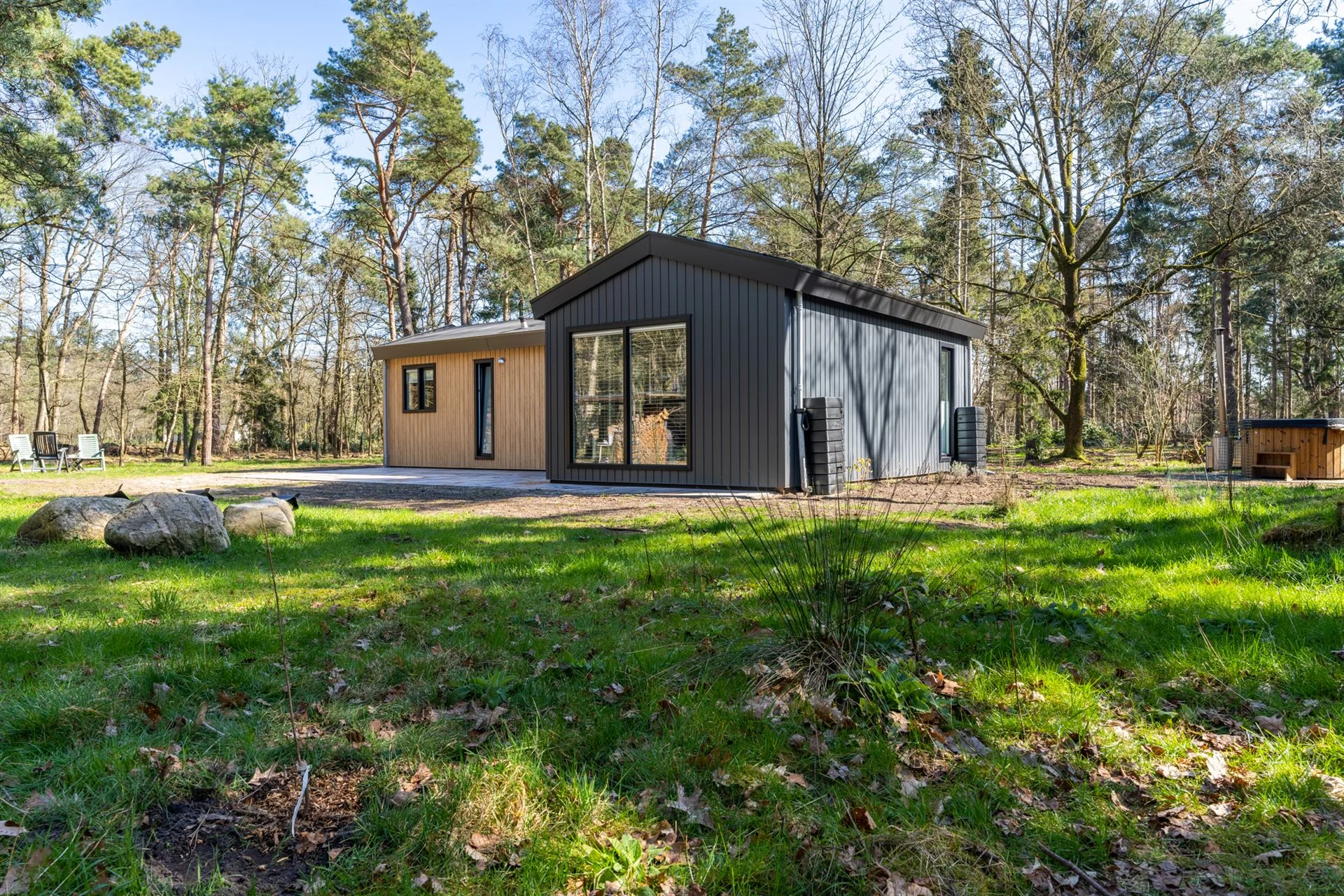Tweede huis L-vorm 68m² in Ambt Delden (Twente). Deze Oosthuis klant beschikt over een schitterend stuk grond in de Twentse bossen waar we hen een tweede woning hebben gerealiseerd. De woning is voorzien van 2 ruime slaapkamers, een grote was/bergruimte, een gezellige zithoek plus open keuken. Door de grote ramen is het Twentse bos van alle kanten te bewonderen. Uiteraard is de woning zeer goed geïsoleerd en bovendien door kunststof gevelbekleding en kozijnen onderhoudsvrij.